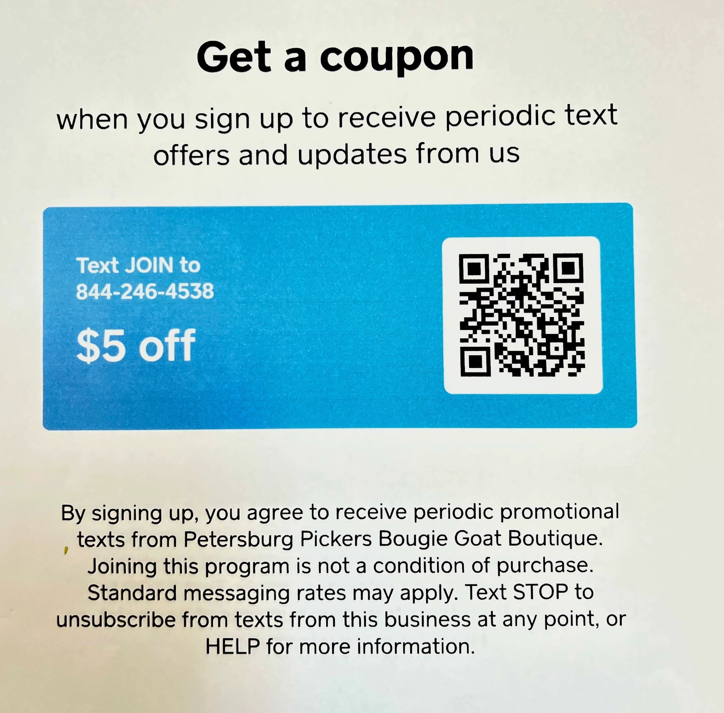 Have items for us to consider? Please text or email photos to 804-586-1633 or bougiegoatboutique@gmail. We will respond as quickly as humanly possible.